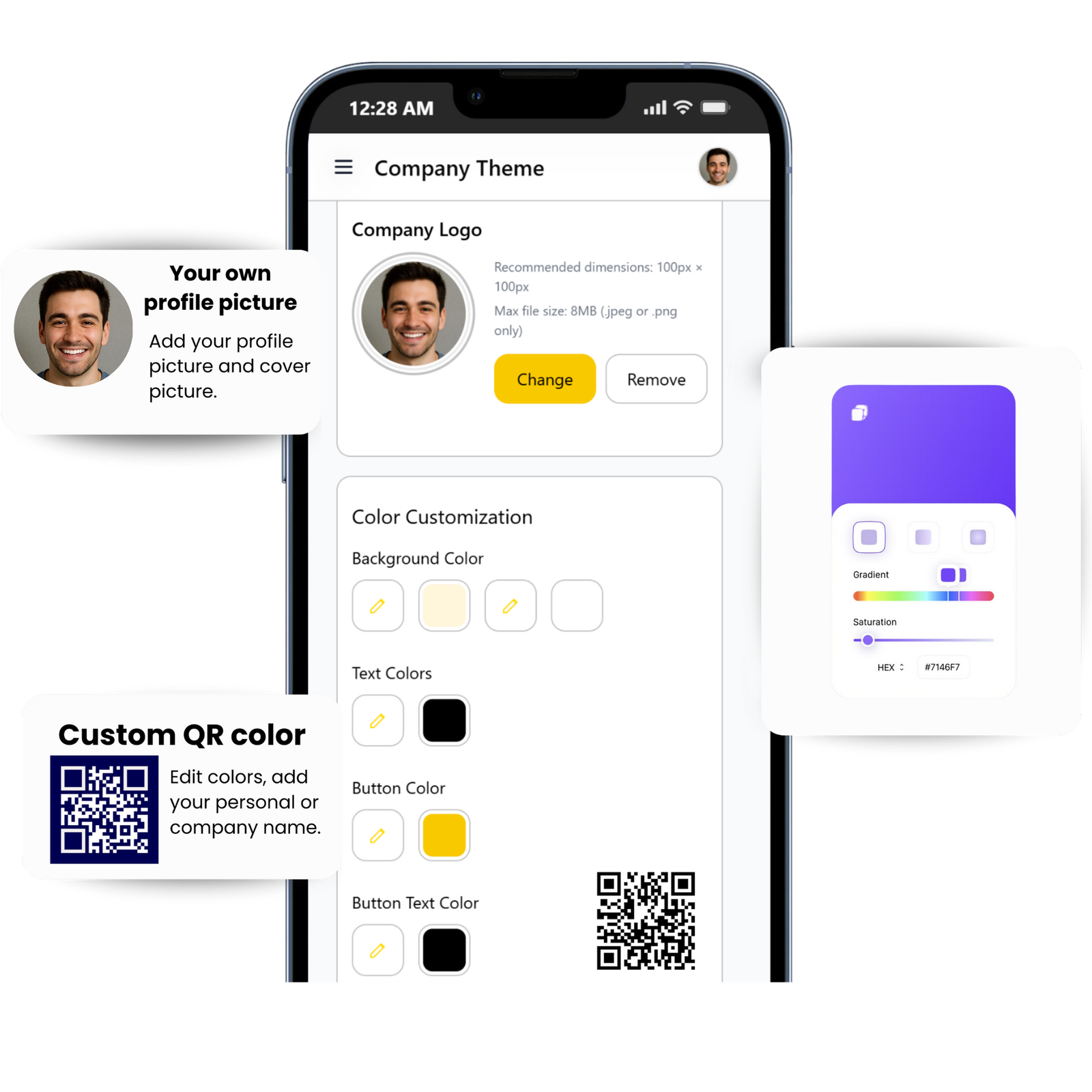 Design your card your way! Choose colors, layout, and sections to reflect your style and brand.